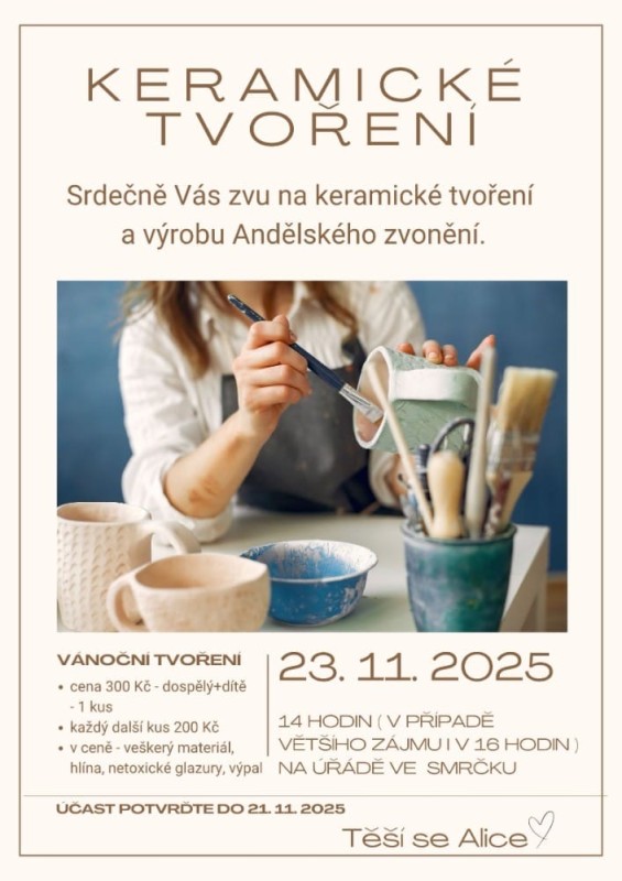 23. 11. 2025 - KERAMICKÉ TVOŘENÍ S ALICÍ - ANDĚLSKÉ ZVONĚNÍ